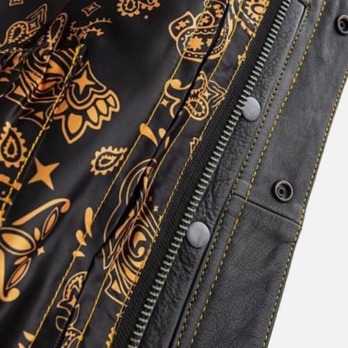 Men's Smart Biker Vest for Men Premium Cowhide Black Leather Motorcycle Vest with Unique Scoop Collar Design &Gold Liner 7