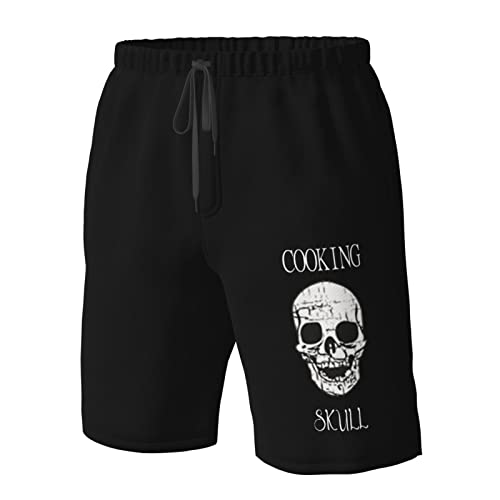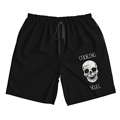HOT ! Skull-Chef Cooking Skull Men's Beach Shorts Drawstring Quick Dry Running Athletic Shorts Comfortable Loose Gym Shorts Swimsuit Pants Large