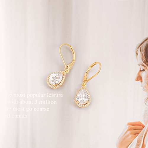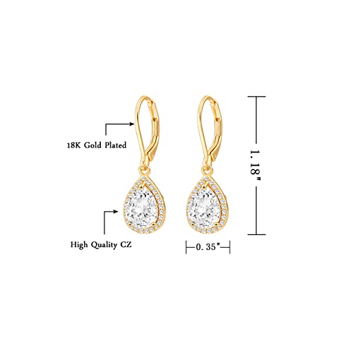 POTESSA Dangle Drop Earrings Teardrop Cubic Zirconia Crystal 18K Gold Plated Leverback Earrings for Women Wedding 4