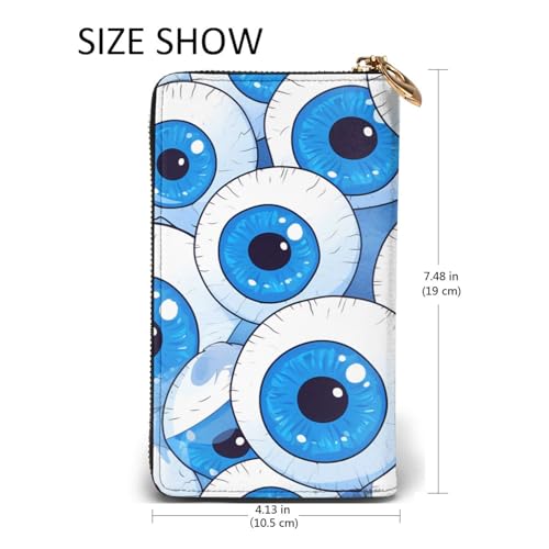 HOT ! Rounded Eyeballs Prints Leather Long Clutch Wallet for Fashionable Girls and Women - Durable, Stylish, and Functional, Black, One Size