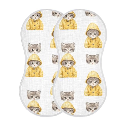 vvfelixl Muslin Burp Cloths Kitten Wear Cute Raincoat Baby Washcloths for Baby Girl Boys 2 Pack 2