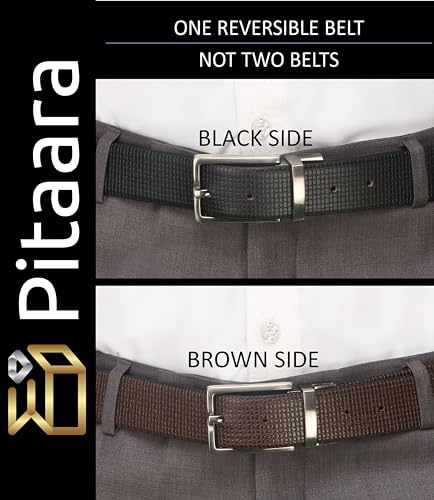 HOT ! Pitaara Genuine Leather Reversible Belt For Men, Crossline Pattern (Black/Brown)