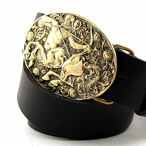 Leather belt with Sagittarius belt buckle, Horoscope Astrological Zodiac Sign solid brass belt buckle for casual belt for men and women 1