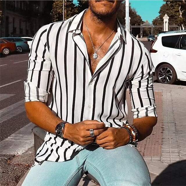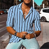 More information about Men's Geometric Striped Shirt Button Up Shirt Casual Dress Shirt Long Sleeve Fashion Casual Formal Vacation Dailywear Summer Spring Turndown 3D Print Collared Shirts White Yellow Blue