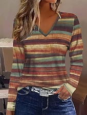 More information about Women's T Shirt Ombre Graphic Striped Vintage Stylish Classic Long Sleeve V Neck Regular Tops Daily Print Brown Spring Fall Winter