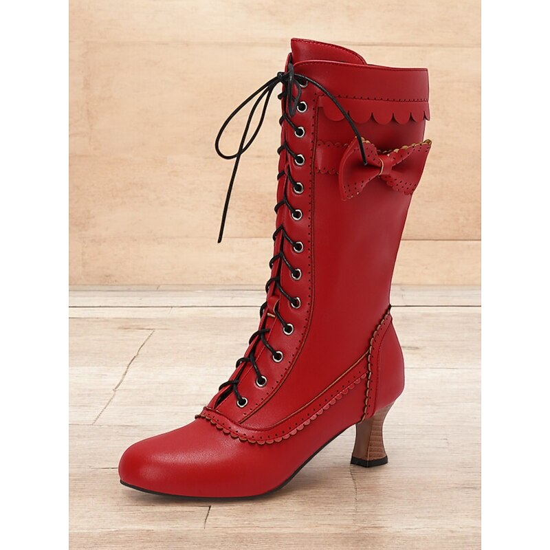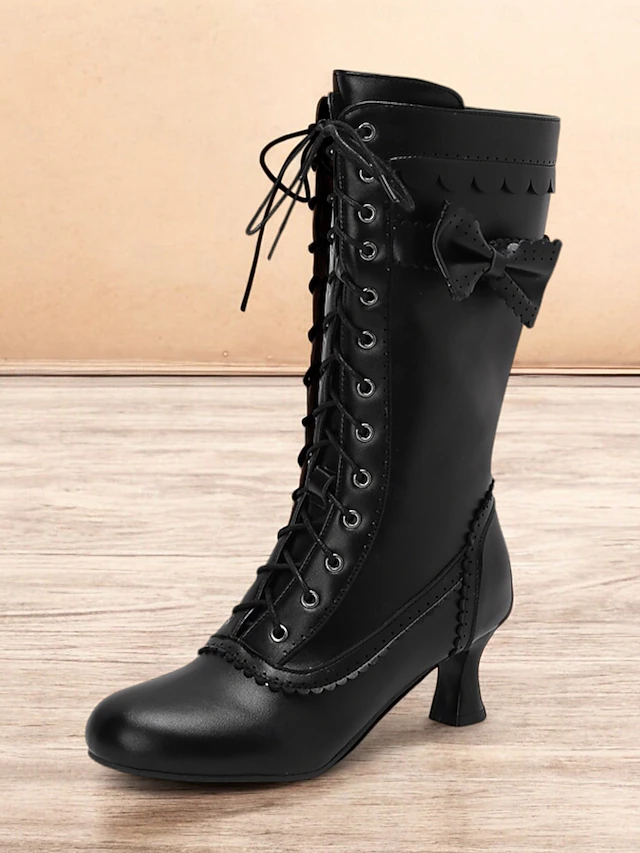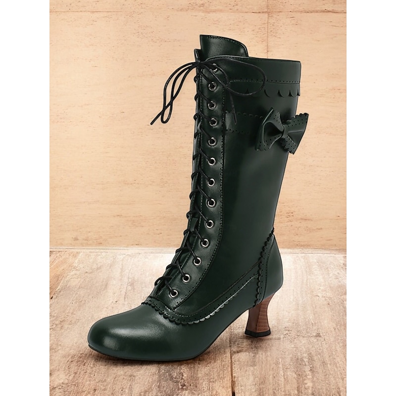Highlights [Fabric & Material] : Crafted from high-quality PU and textile lining, these Women's Brown Vintage Lace-Up Knee-High Boots offer durability with a smooth, polished finish for that added touch of sophistication. The rubber outsole ensures a reliable grip, suitable for various surfaces. [Silhouette & Design] : These mid-calf boots feature a vintage-inspired lace-up design, complemented by a zipper closure for convenient wear. The stiletto heel provides an elegant lift, while the round toe shape maintains comfort without sacrificing style. [Design Highlights] : A charming bow detail accentuates the boots' feminine appeal, and the scalloped edges add a subtle, decorative touch. The neat eyelets contribute to the classic Victorian look, making these boots a standout piece in any ensemble. [Occasions] : Perfect for both casual and semi-formal settings, these boots pair effortlessly with dresses, skirts, or skinny jeans, making them versatile for daily and work wear. Embrace the retro trend of 2024 with these fashionable boots that transition seamlessly from day to night. [Size Notice] : Available in a range of sizes from US5.5 to US10.5, these boots are designed to fit true to size. Select your usual size for the best fit and comfort. Perfect for everyday use. first-class materials and excellent craftsmanship ensure long-lasting durability.
