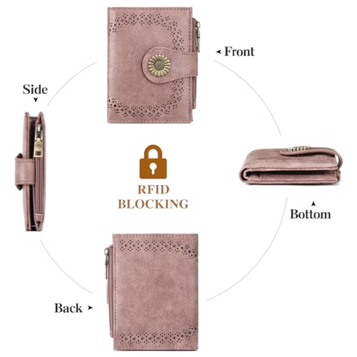 SENDEFN Small Wallets for Women Bifold RFID Blocking Leather Card Holder Compact Wallet with Zipper Coin Pocket 6