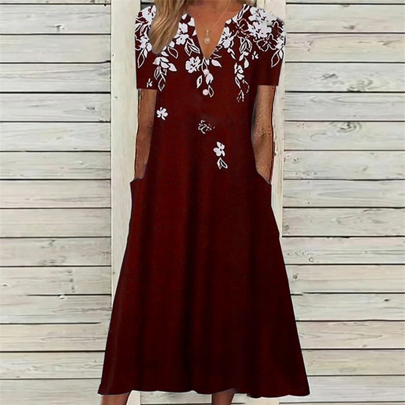 More information about Women's Midi Dress Casual Dress Navy Blue Half Sleeve Floral Pocket Summer Spring Fall V Neck Vacation Daily Vacation 2023 S M L XL XXL 3XL