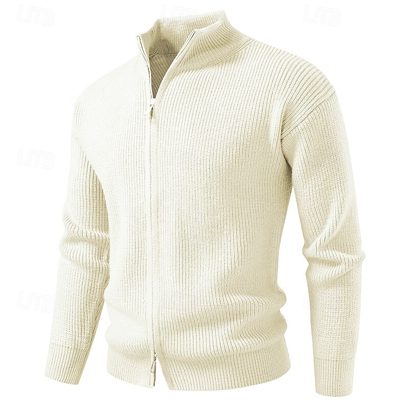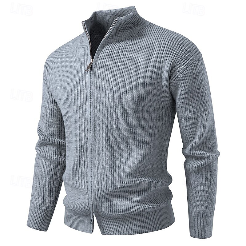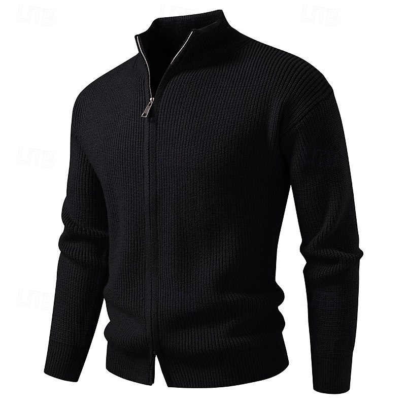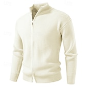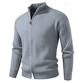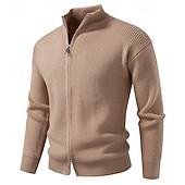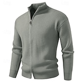 More information about Men's Cardigan Sweater Cropped Sweater Zip Sweater Knit Sweater Ribbed Knit Regular Tops Plain Stand Collar Fashion Classic Vacation Daily Wear Clothing Apparel Winter Black Red S M L
