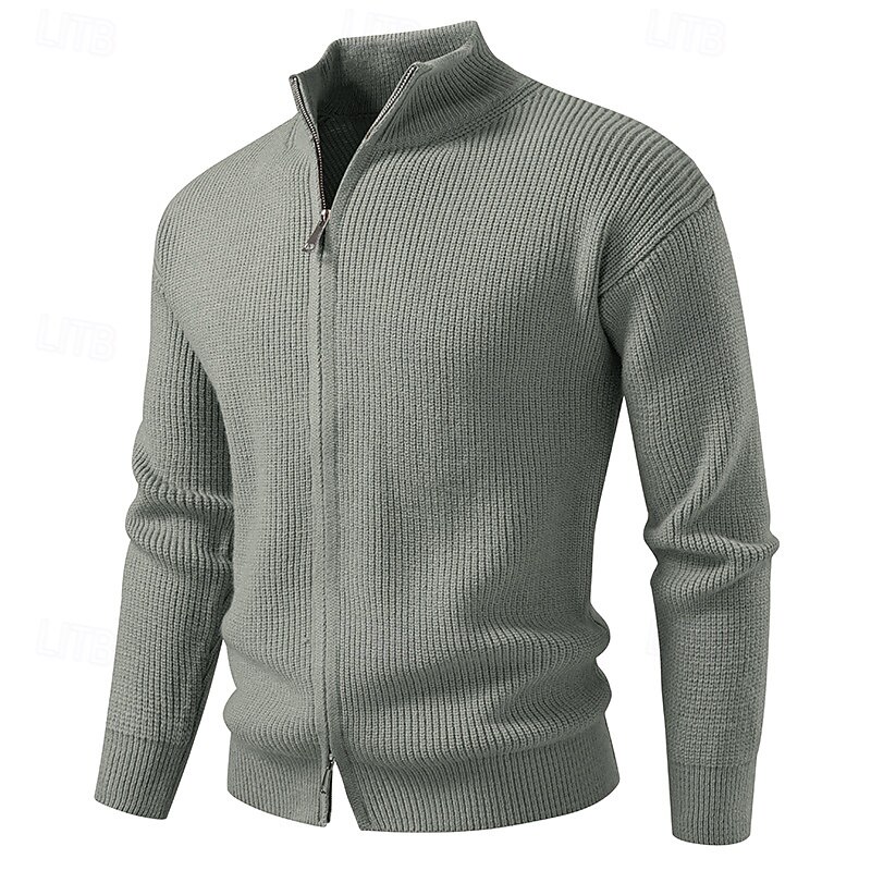 HOT ! Men's Cardigan Sweater Cropped Sweater Zip Sweater Knit Sweater Ribbed Knit Regular Tops Plain Stand Collar Fashion Classic Vacation Daily Wear Clothing Apparel Winter Black Red S M L