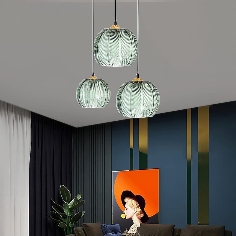 LED Pendant Lights Green Glass Pendant Lighting for Kitchen Island Kitchen Lights Ceiling 1 Pack 110-240V 3
