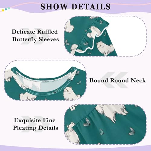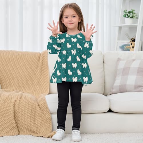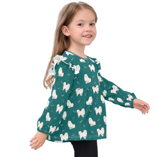 Samoyed Dog Butterflies Girls Shirts Cotton Long Sleeve Ruffle Toddler Tee Tops 4