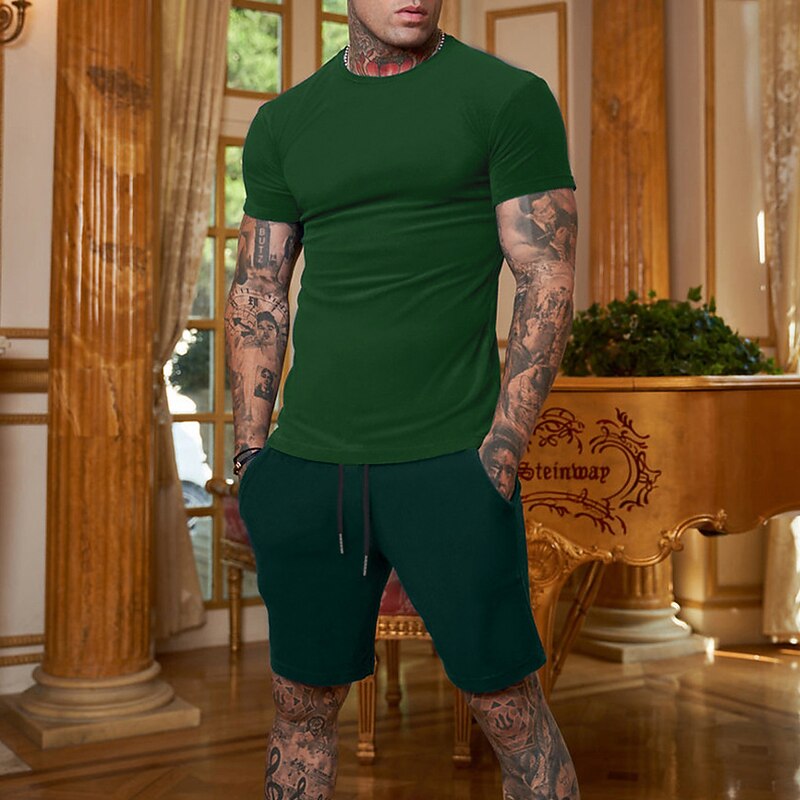 Men's T-shirt Suits Tracksuit Tennis Shirt Shorts and T Shirt Set Short Sleeve Crew Neck Spring & Summer Solid Color Sports Fashion Designer 2 Piece Outdoor Street Casual Green / Black Sea Blue Yellow 11