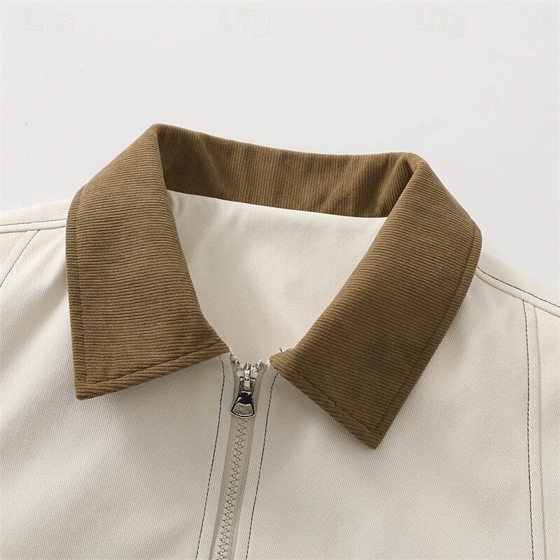Men's Jacket Casual Jacket Outdoor Vacation Warm Zipper Pocket Fall Winter Plain Fashion Streetwear Standing Collar Regular Black Brown Army Green Beige Jacket 1