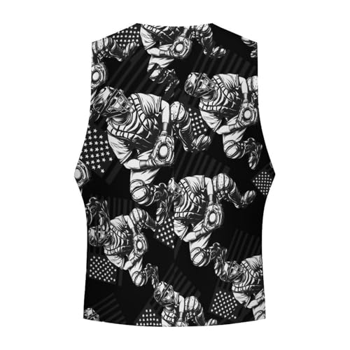 Baseball Catcher USA Flag Men's Suit Vests Business Formal Dress Vest V-Neck Waistcoat for Wedding Casual 6