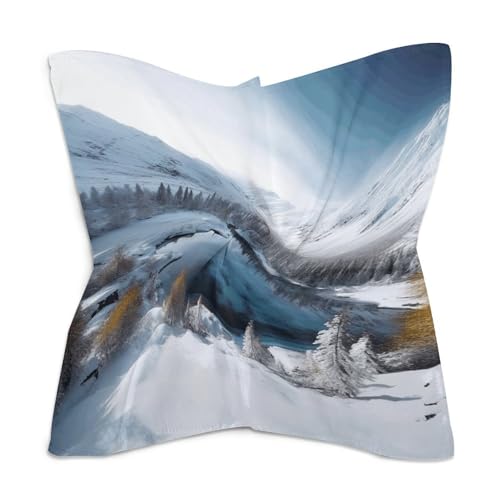 HOT ! Women Square Head Scarf Boho Hair Scarf Winter Mountains Snow Scene Head Kerchief Woman Headband Satin Bandanas Fashion Neck Scarves Silk Headwear for Bag Hair Scarves Gift 18"×18"
