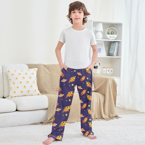 Boy's Pants Pizza Spaceship Jogger Pants Elastic Waist Long Bottoms Trousers with Pockets 6-14 Years 6