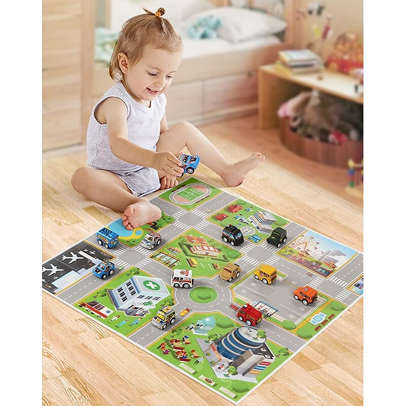 - EDUCATIONAL CAR TOYS: Not only is this toy a perfect Christmas countdown, but it also helps in the educational development of children. As they touch the car toys, they can exercise shape recognition. Playing with the built-in map improves hand-eye coordination. Additionally, children can learn about different vehicles, such as Police cars, fire engines, and construction vehicles, which can inspire their curiosity about careers and future plans.