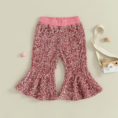 Qiylii Toddler Girl Bell Bottoms Pink Sequins Flared Pants Elastic Waist Sequin Halloween Trousers Outfits 7