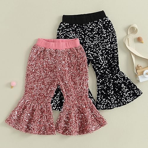 Qiylii Toddler Girl Bell Bottoms Pink Sequins Flared Pants Elastic Waist Sequin Halloween Trousers Outfits 2
