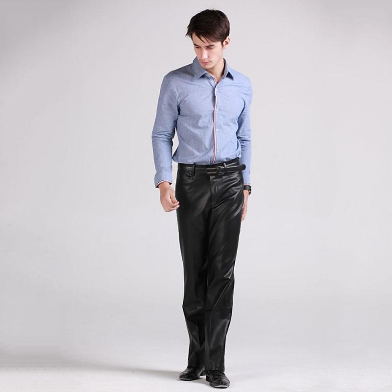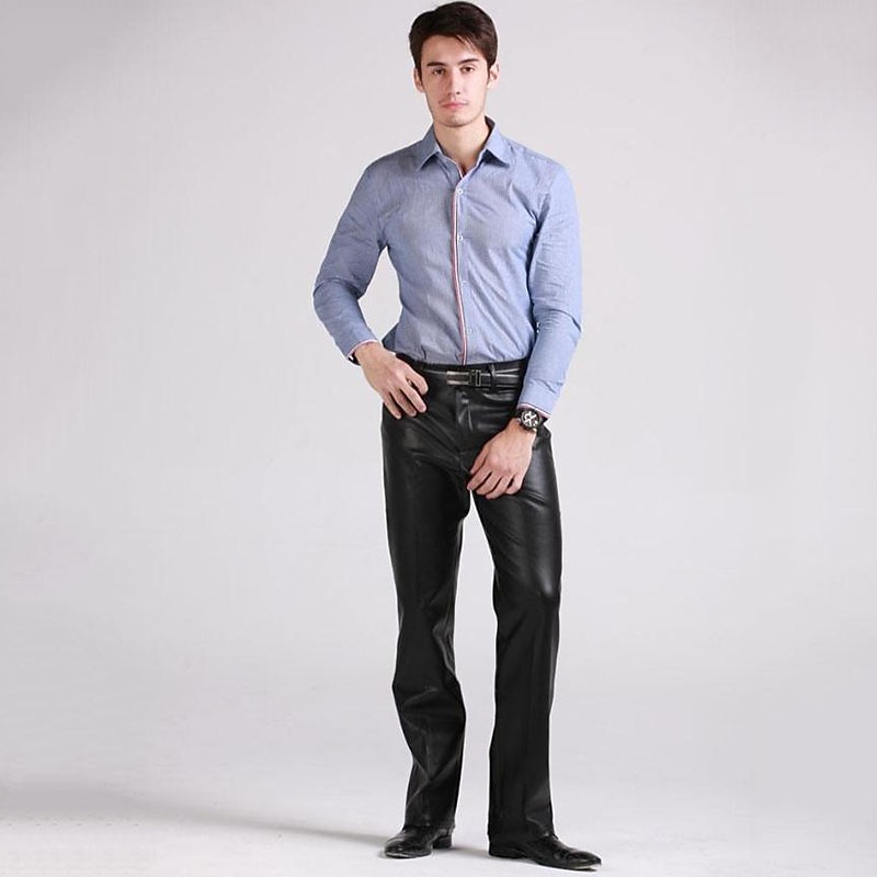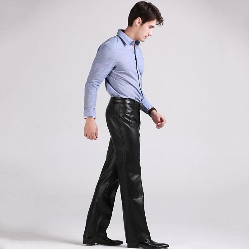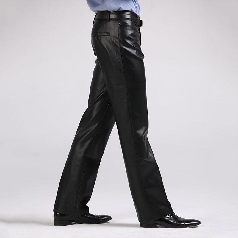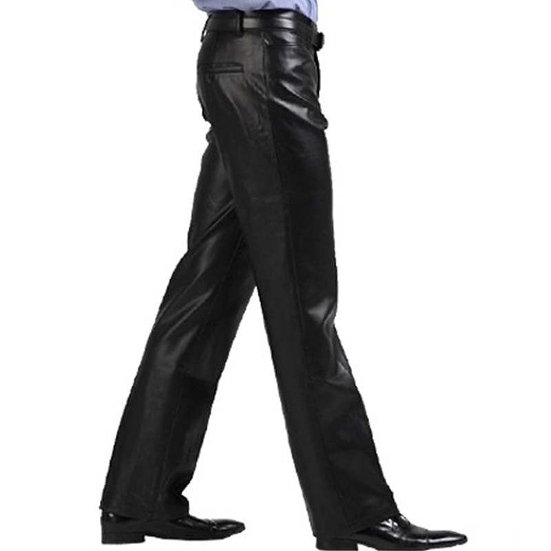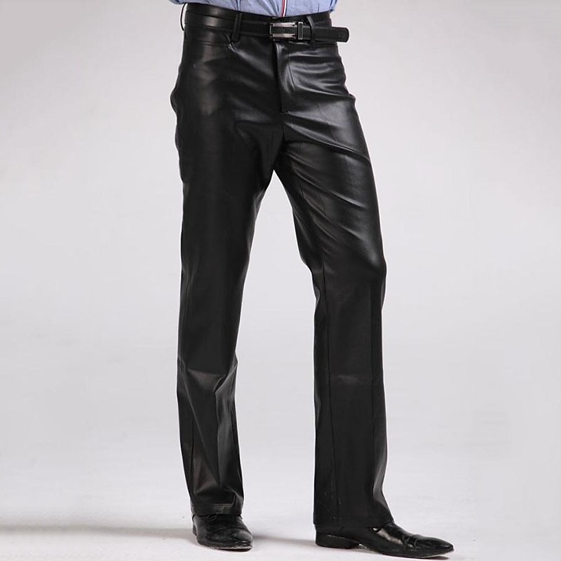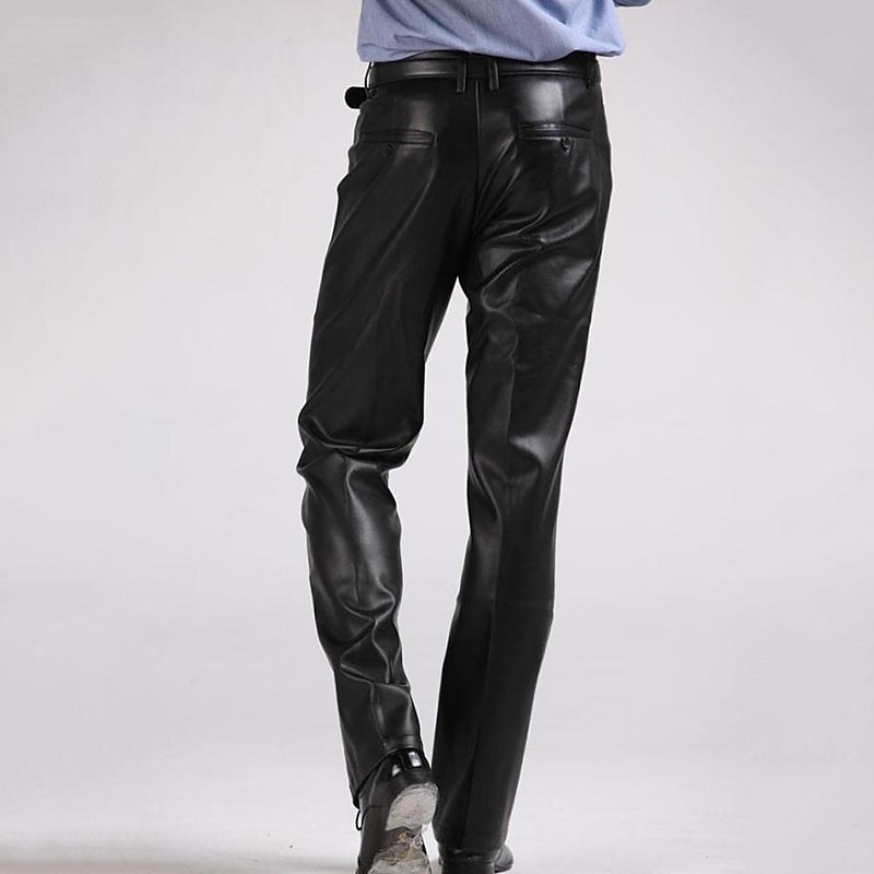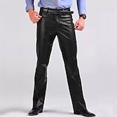 More information about Men's Dress Pants Winter Pants Trousers Faux Leather Shorts Pocket Straight Leg Solid Colored Comfort Warm Wedding Office Business Faux Leather Streetwear Casual Black Micro-elastic