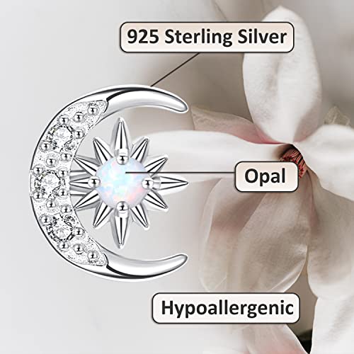 Moon and Star Earrings 925 Sterling Silver Opal Stud Earrings for Women Hypoallergenic Sun and Moon Earrings Crescent Moon Star Jewelry Gift for Women for Sensitive Ears 5