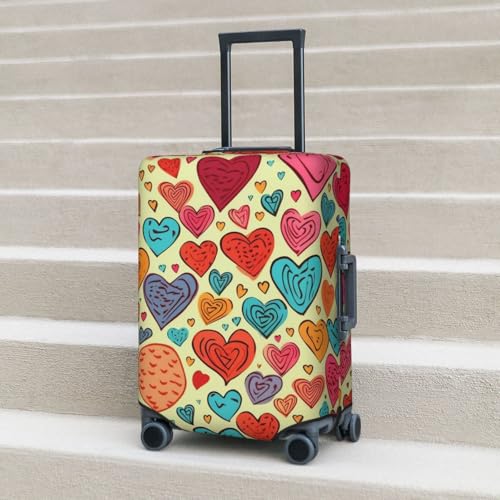 HOT ! Colorful Heart Pattern Luggage Cover Stretch Washable Suitcase Protector Suitcase Cover Anti-Scratch Luggage Sleeve Elastic Suitcase Case Protector Baggage Cover Fits 18-32 Inch