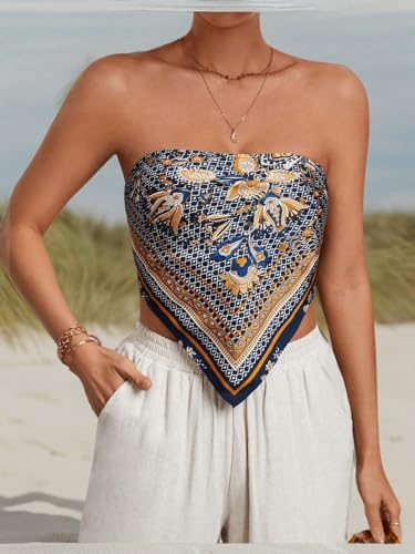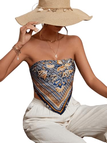 HOT ! Floerns Women's Graphic Print Tie Back Strapless Bandana Tube Top