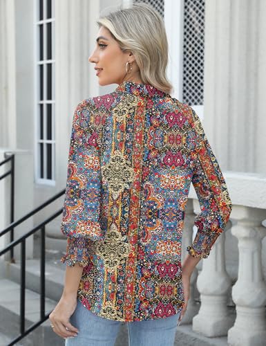 Kistore Womens Button Down Shirts 3/4 Sleeve Smocked Cuffed Business Work Tunic Top with Pocket Collared Blouses 3
