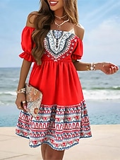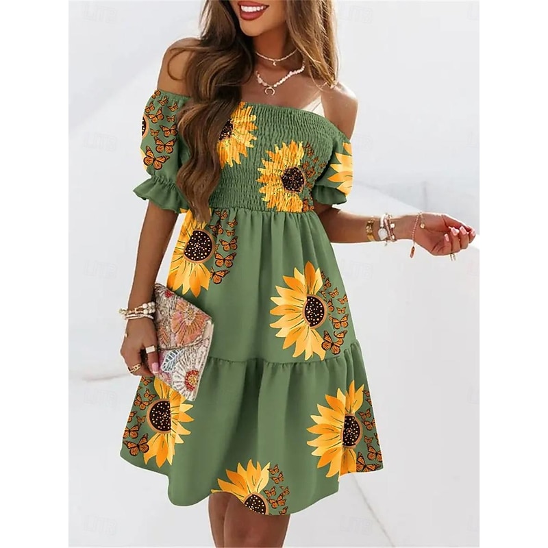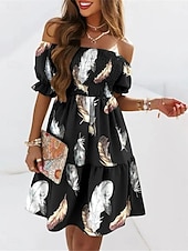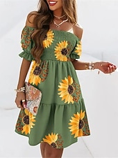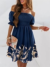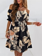 More information about Women's Casual Dress Floral Leaf Backless Print Off Shoulder Mini Dress Stylish Casual Daily Vacation Half Sleeve Summer