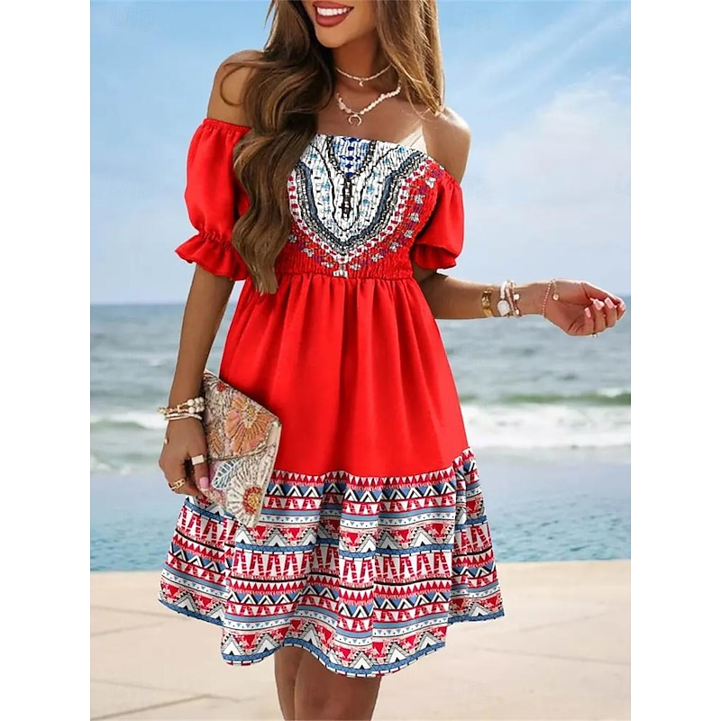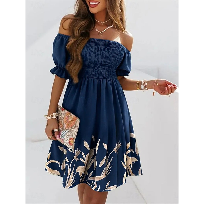 HOT ! Women's Casual Dress Floral Leaf Backless Print Off Shoulder Mini Dress Stylish Casual Daily Vacation Half Sleeve Summer