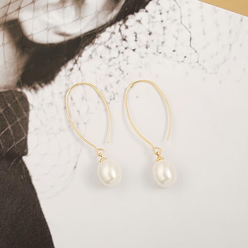 • Elegant Shell Pearl Dangle Earrings: Embrace timeless elegance with these rice pearl drop earrings which feature lustrous 12mm white simulated pearls. Hanging on the long 18k gold plated wire threader hooks, these mother-of-pearl beads are cute and agile. The sophisticated design of the shell pearl long hook earrings adds a touch of refinement to any look.