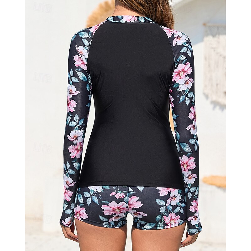 More information about Women's Rash guard Swimsuit UV Sun Protection UPF50+ Lightweight Long Sleeve Spandex Swimwear Bathing Suit Front Zip Swimming Surfing Beach Water Sports Floral Summer Spring Autumn