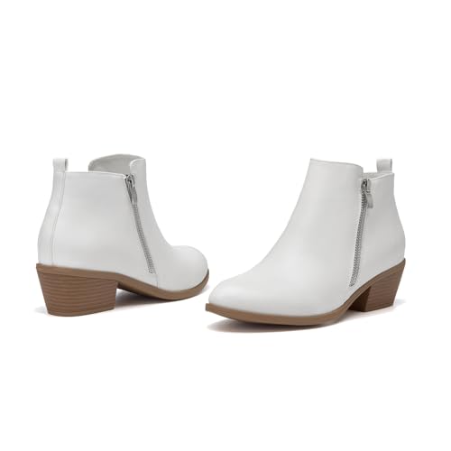 Sole material: RubberOuter material: Polyurethane (PU)Closure type: ZipMATERIALS: PU or Nubuck PU upper and TPR outsole. High-quality, durable, smooth and easy to clean.fashionable: These black booties with heel have two zippers of different colors for beauty. One for decoration and the other for easy wearing and taking off.DESIGN: Anti-skid outsole and soft lining make you feel comfortable when you walk. Smooth side zips and classic round toe make you never go out of style!OCCASION: These womenβs ankle boots are suitable for shopping, party, vacation, walking etc. They can be matched with a variety of clothes as long as you like, such as jeans and sweaters.A MUST-HAVE IN YOUR CLOSET: If you want to have a versatile pair of shoes, this pair will be a better choice. Perfect for everyday use. first-class materials and excellent craftsmanship ensure long-lasting durability.