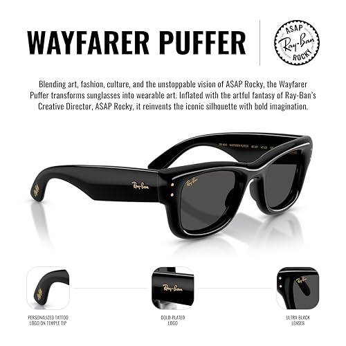 • FRAME FEATURES: Embodying Rocky's signature style, RB4940 Wayfarer Puffer Blacked Out Collection by A$AP Rocky feature gold-plated details, an internal temple logo, and AWGE's signature "tattoo" logo on the temple tips.