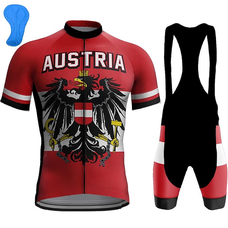 HOT ! Men's Cycling Jersey with Bib Shorts Short Sleeve Mountain Bike MTB Road Bike Cycling Red Navy Blue Royal Blue Austria Bike Clothing Suit 3D Pad Breathable Quick Dry Back Pocket Polyester Spandex