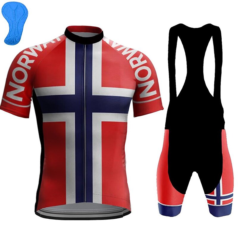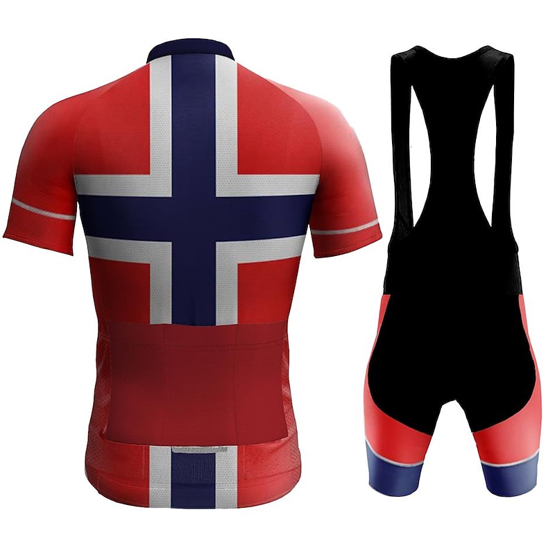 More information about Men's Cycling Jersey with Bib Shorts Short Sleeve Mountain Bike MTB Road Bike Cycling Red Navy Blue Royal Blue Austria Bike Clothing Suit 3D Pad Breathable Quick Dry Back Pocket Polyester Spandex