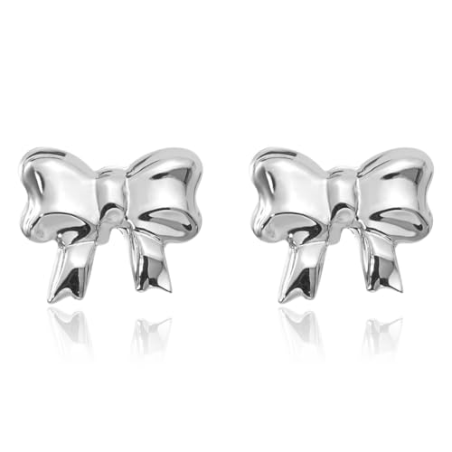 HOT ! 14K Solid White Gold Bow Screw Back Stud Earrings
