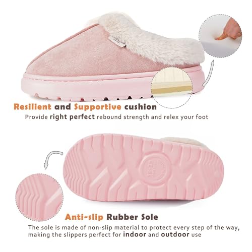 • 【WARM AND STYLISH】Cuddle up and beat the chill! Crafted from soft and breathable vegan suede, these bedroom slippers feature stitching at the centre of the toe and a fluffy faux fur collar that wraps 360 degrees around your feet from ankle to heel to keep you warm.