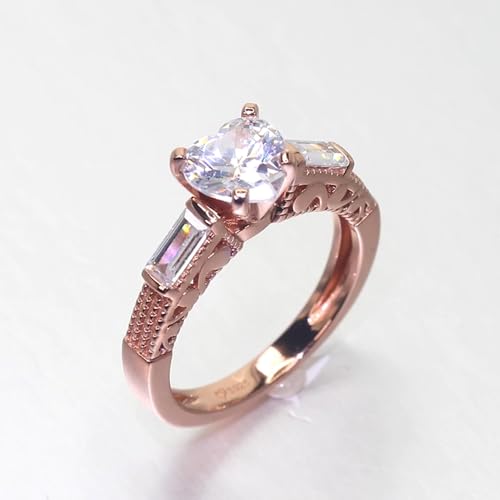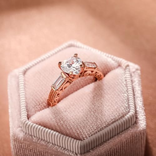 HOT ! Jeulia 2.3 ct Diamond Ring Rose Gold Three Stone Heart Cubic Zirconia Crystal Band Moissanite Engagement Ring For Women Halloween Christmas Gifts with Jewelry Box