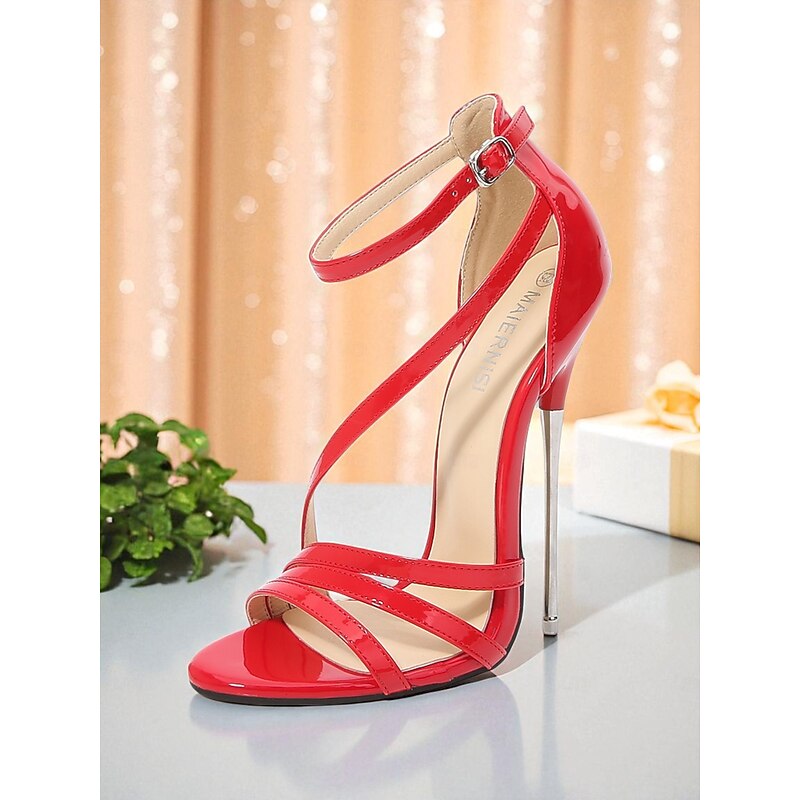 HOT ! Women's Red Patent PU Strappy Sandals - Stiletto High Heels with Ankle Strap for Nightlife, Clubbing and Party Looks
