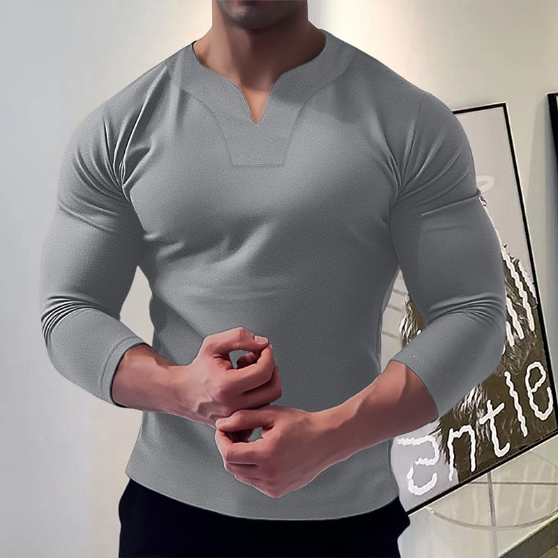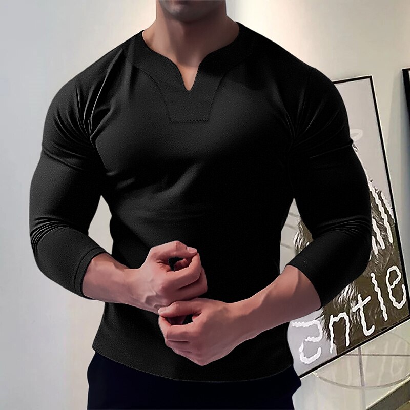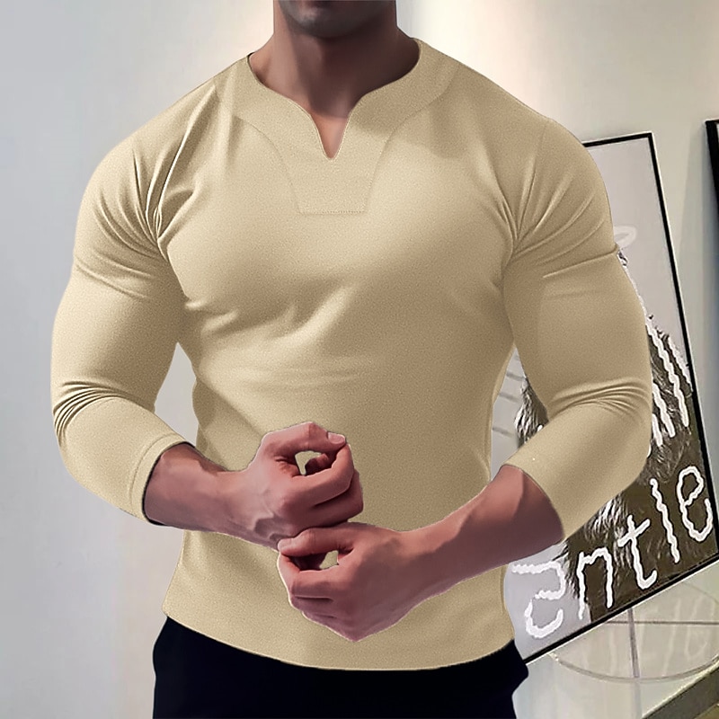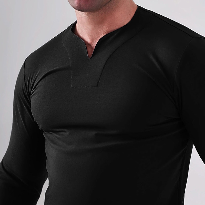 Highlights [Fabric and Fit] This men's long-sleeve T-shirt is crafted from high-quality polyester, providing a comfortable and breathable experience. With its micro-elastic property, the shirt ensures a snug yet comfortable fit, suitable for everyday wear. The soft, stretchy fabric allows for a flattering, fitted silhouette that enhances the wearer's physique. [Design Highlights] Featuring a modern V-neckline, this shirt adds a touch of contemporary style and sophistication. Its plain pattern design offers a versatile look that can be easily incorporated into any wardrobe. The long sleeves contribute to its sleek appearance, making it a stylish choice for any occasion. [Occasions] Ideal for vacation, street outings, casual daily wear, and going out, this T-shirt effortlessly combines comfort with a fashion-forward aesthetic. Whether you're planning a relaxed day out or a casual evening, this shirt suits a wide range of settings, offering both style and versatility. [Size Range] Available in a variety of sizes from S to XXXL, ensuring a proper fit for a diverse range of body types. This comprehensive size range makes it accessible for adults seeking a regular fit and comfortable design. [Colors] Offered in classic colors such as white, black, dark gray, navy blue, gray, and khaki, this T-shirt provides versatile options to complement various styles and preferences.