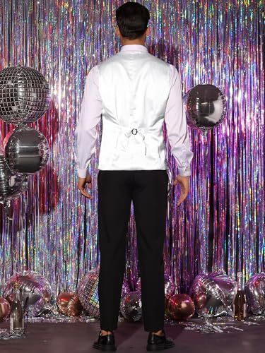 • You can order A LARGER SIZE if you want a bit looser fit. V-Neck, single breasted, button closure, all over sequin, shiny suit waistcoat with bow ties.