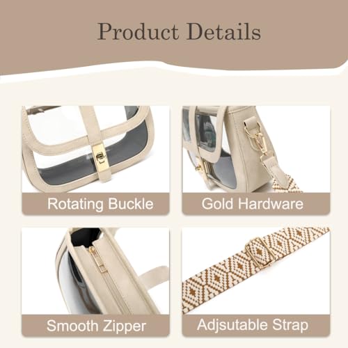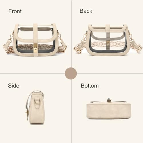 • Stylish Clear Crossbody Bag: The chic flap clear purse is the epitome of elegance and practicality. With its gold hardware accents and PU leather trim, this small clear stadium bag is not only a fashion statement but also a functional accessory. Ideal for venues with clear bag policies or as a daily carryall, it's the perfect blend of style and utility.