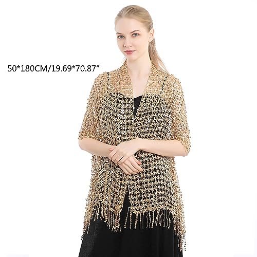 Delicate Tassels Trim Shawl for Ladies r Lightweight Shawls Wedding Party Anti-uv Scarf with Shinning Sequins Gold 6
