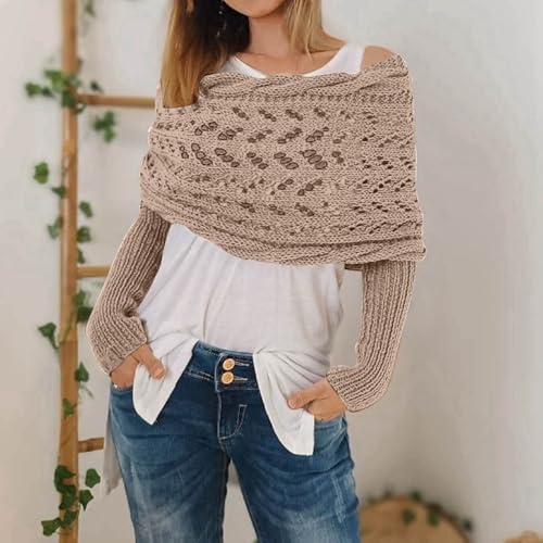 HOT ! Knitted Scarf with Sleeves for Women,Multifunctional Cable Knit Wrap,Crochet Scarf Shawl Shrug for Women Sweater Scarf
