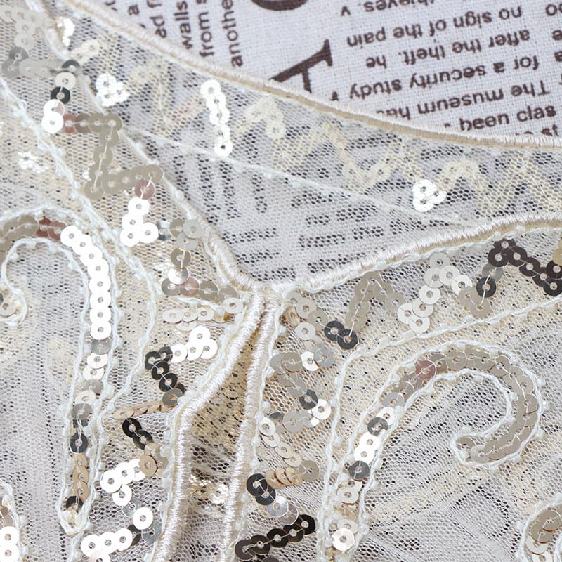 1Pcs Champagne 1920s Flapper Shawl with Sequin Detailing Breathable Mesh Elegant Short Cape for Women Parties Prom 7