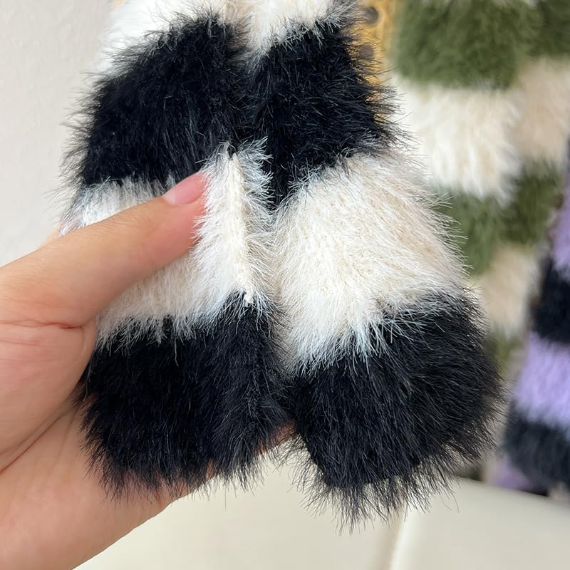 More information about Y2k Striped Scarf Long Skinny Scarf Cute Fuzzy Neckerchief Fluffy Scarves Grunge Acubi Accessories Emo Streetwear