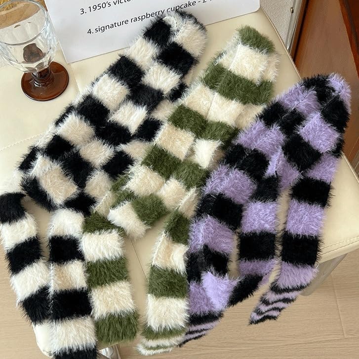 HOT ! Y2k Striped Scarf Long Skinny Scarf Cute Fuzzy Neckerchief Fluffy Scarves Grunge Acubi Accessories Emo Streetwear