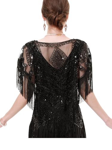 sy soul young 1920s Shawl Wrap Sequin Fringe Flapper shawl Cap for Women Evening Dress Wedding Gatsby Party Harlem Night 1
